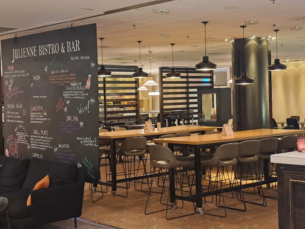Muistan Julian alkuaikoina, miten sisääntuloaula vaikutti mahdottoman avaralta. Myöhempinä vuosina aulaan hankittiin enemmän mainostauluja ja lattialla seisovia valomainoksia sekä istuimia, joten avaruuden tuntu vaihtui minusta enemmän kodikkuuteen.
