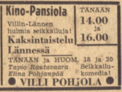 1990 –luvulla kävin Pansiolan talossa, jossa toimi tuolloin baari. Kun kerroin, että olen katsomassa vanhaa elokuvien esityspaikkaa, baarissa istuneet ”pojat” innostuivat kertomaan, miten olivat itsekin nuorempina istuneet siellä elokuvissa, ja ”Ain sali ol ihan täys”. Huvittavaa, että vaikka elokuvia ei enää ollut, samat pojat istuivat Pansiolassa vieläkin.