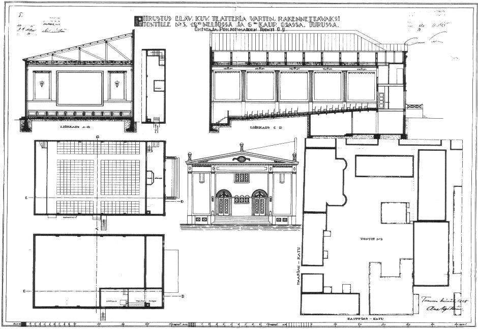 Vuonna 1925 rakennutti Kauppiaskatu 13:ssa olevalle tontilleen Pohjoismaiden Tuonti Oy elokuvateatteri Kosmoraman. Tarkemmin ottaen hankkeen takana oli Pohjoismaiden Tuonti Oy:n toimitusjohtajan K. E. Heikolan sekä liikemiesten Gunnar Jorman ja K. F. Heikolan perustama Oy Kosmorama Ab –niminen yhtiö. Turussa oli aiemminkin toiminut samanniminen elokuvateatteri Suurtorilla, liekö tällä yhteyksiä nimivalintaan, ei tiedetä.