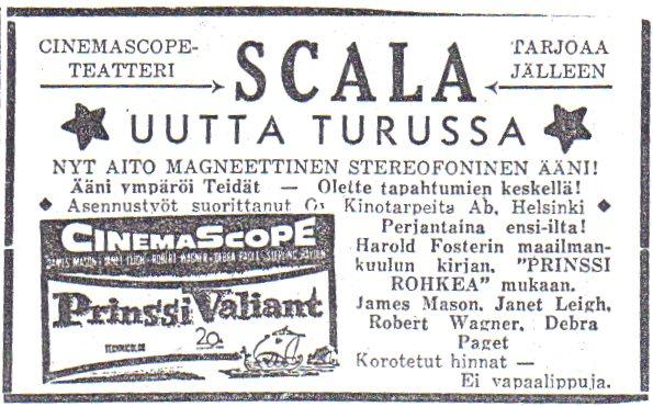 CinemaScope –kankaan myötä ennen lähinnä seikkailu- ja lännenkuviin erikoistunut Scala ponnahti loisteliaaksi ensi-iltateatteriksi, jonka ohjelmistossa olivat uusimmat Scope -tekniikalla kuvatut suurelokuvat.
