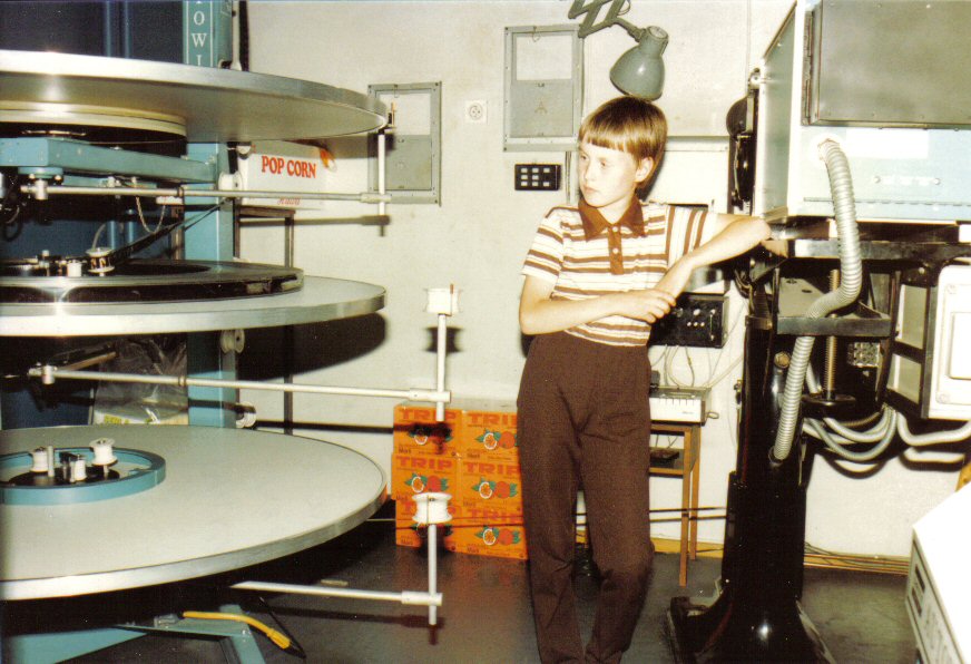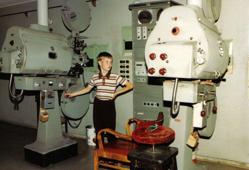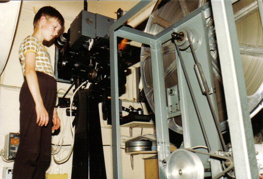 Suunnilleen saman ikäisenä opettelin käyttämään elokuvakoneita, ja ensimmäisen julkisen näytöksen esitin yksin 12-vuotiaana Paimion Kinossa sairastapauksen tuuraajana. 14-vuotiaana hankin kotimme autotalliin oman teatteriprojektorin. Isän auto sai useasti tyytyä pihalla olemiseen, kun autotallissa pyörivät Kinosta salaa papalta lainatut elokuvat.